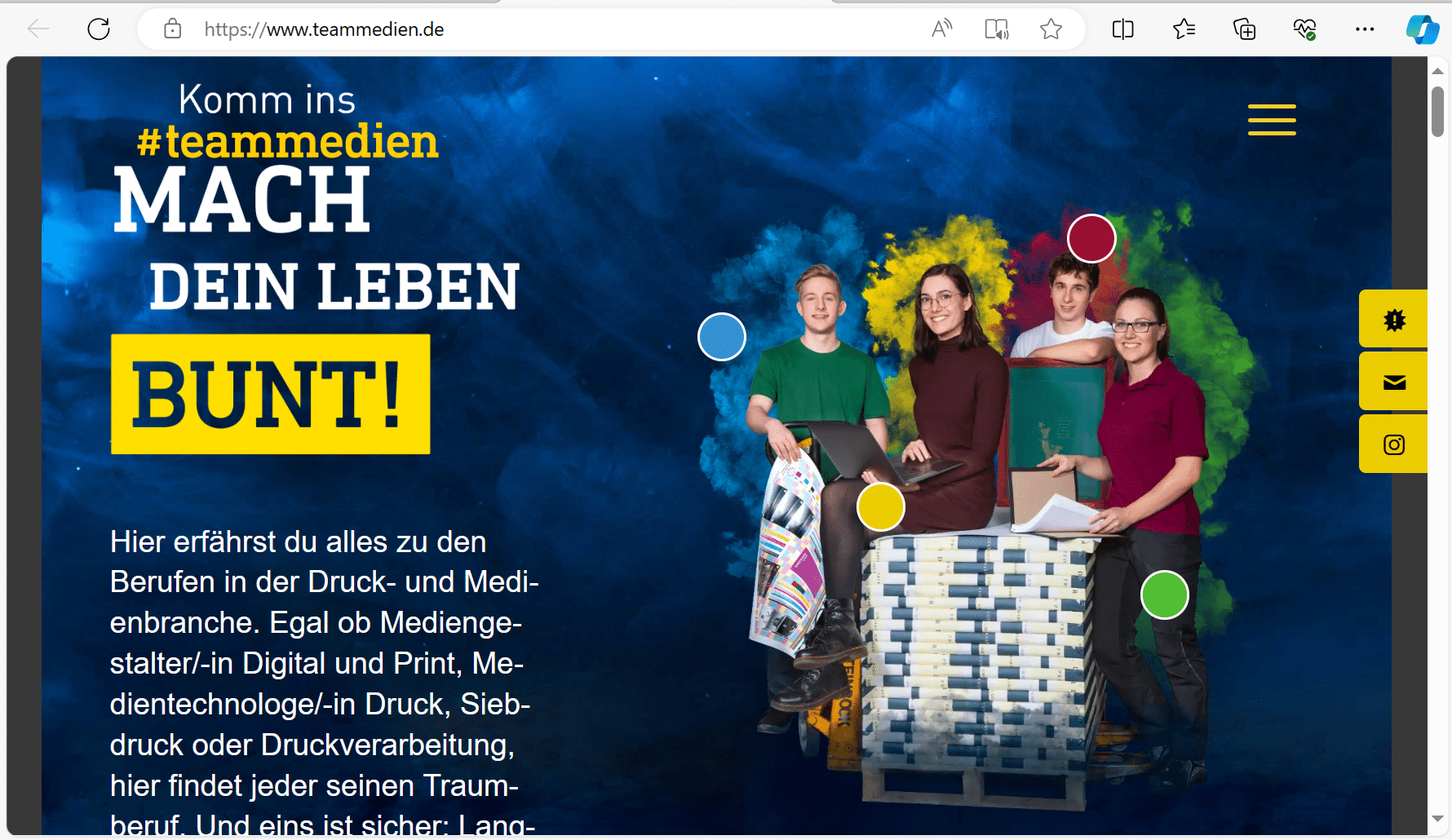 Die Druck- und Medien-Verbände wollen die Branche besser ins Blickfeld der Schulabgänger rücken. So wie hier mit der Website teammedien.de