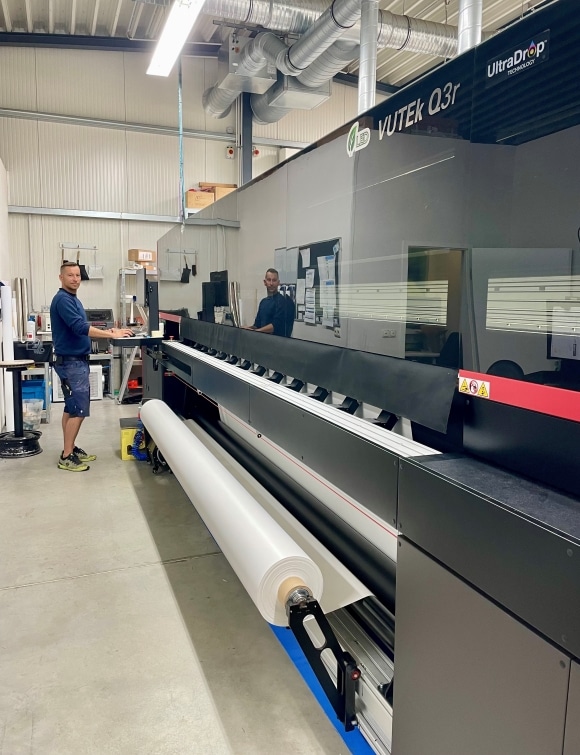 Ein bedeutender Schritt in der technologischen Weiterentwicklung des Unternehmens war die Installation einer EFI Vutek Q3r im April 2024. Diese hochmoderne UV-LED-Rolle-zu-Rolle-Druckmaschine ermöglicht es dem Unternehmen, noch effizienter zu produzieren. Mit einer Druckgeschwindigkeit von bis zu 558 Quadratmetern pro Stunde und einer maximalen Druckbreite von 3,5 Metern bietet die Maschine nicht nur Geschwindigkeit, sondern auch eine sehr hohe Präzision. Das Drucksystem nutzt CMYK-Farben, ergänzt durch Weiß, Klarlack und Sonderfarben. Die EFI Vutek Q3r erreicht eine Auflösung von bis zu 1200 dpi.