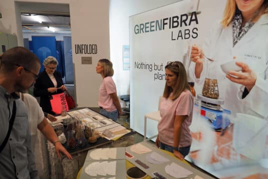 Greenfibra Labs ist ein Auftrags- und Entwicklungslabor für alternatives Papier aus Pflanzenfasern und eine der jüngsten Initiativen von Gmund-Inhaber Florian Kohler. Am Infostand im Rahmen der Ausstellung des Unfolded Festivals konnte man sich zeigen lassen, wie Greenfibra Labs für seine Kunden neuartige Fasermaterialien erzeugt – “für nachhaltige Verpackungen und ökologische Produktkommunikation”.
