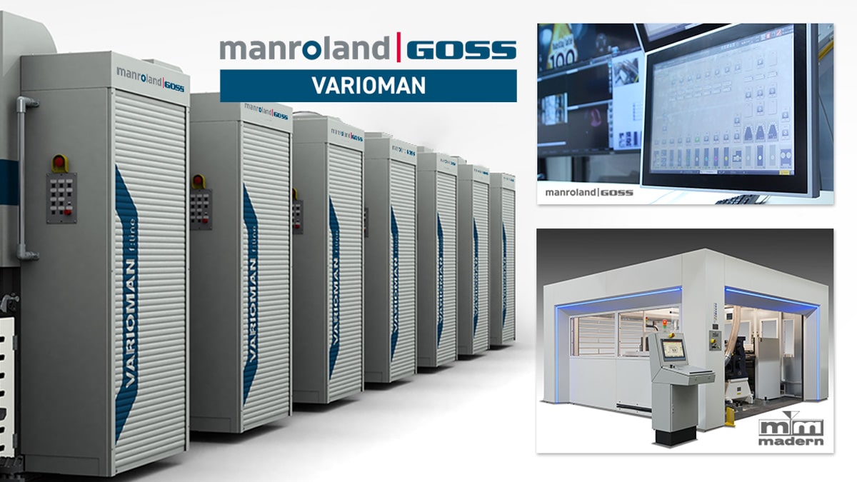 Die Varioman C-Line ist ausgestattet mit einem automatischen Abwickler mit Bahnspeicher und Stoßklebung, Bahnreinigung, Bahnkantenregelung, Spezialzugeinheit plus fünf Offset-Druckwerken, einer Flexodruckeinheit, einem Elektronenstrahlhärter sowie einer Inline-Rotationsstanze.