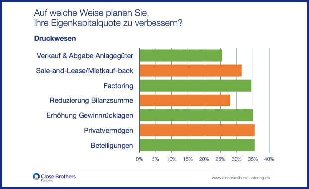 Laut einer Umfrage durch Close Brothers wollen viele Druckdienstleister im kommenden Jahr ihre Eigenkapitalquote erhöhen. (Bild: Close Brothers Factoring GmbH)