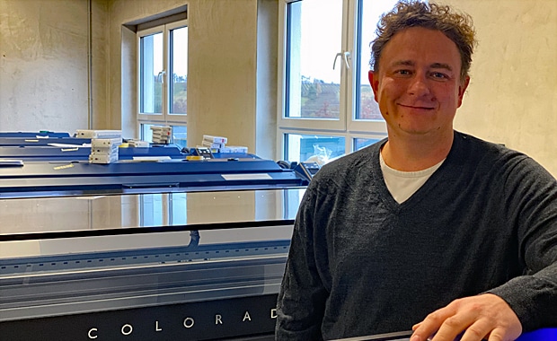 Michael Hiemann ist im Stress. Mitten im Jahresendgeschäft zieht er gerade 20 Large-Format-Printer und -Cutter in sein Lager um – und das Lager wiederum in eine angemietete Halle, um Platz für eine neue Canon Labelstream und einen SEI-Laser zu schaffen. Und Michael Hiemann ist sauer: „Eigentlich sollten die zwei Maschinen ja direkt in unseren neuen Anbau kommen. Aber auf die Freigabe durch das Bauamt warten wir inzwischen seit über einem Jahr!“