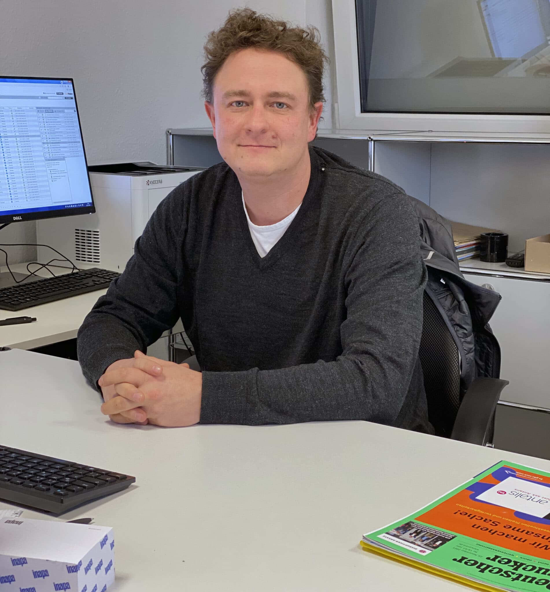 Nach Schulabschluss und Zivildienst verschlug es Hiemann dann für ein halbjähriges Praktikum in eine kleine Werbeagentur, in der die Kundenberater zugleich Printproduktioner waren. „Aber kreative Werbekampagnen zu realisieren, war nicht so mein Ding. Ich wusste einfach, dass hier Vieles am Produktionsalltag einer Druckerei vorbei geplant wurde, stellenweise auch völlig unrealisierbar war!“