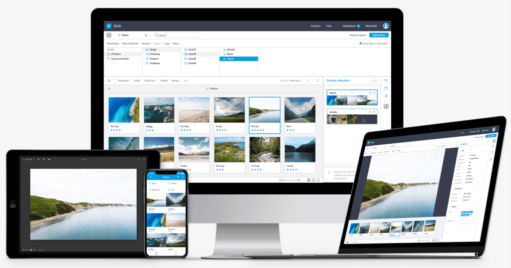 Erstellen von digitalen Assets aus der Digital Asset Library: Die Möglichkeiten der kreativen Zusammenarbeit unterscheiden sich von DAM zu DAM. Eine gute Digital-Asset-Management-Lösung sollte es Anwendern aber in jedem Fall ermöglichen, ihre Arbeit bei laufender Produktion zu teilen und dabei Kommentare und Bewertungen zu erhalten. Sie sollte auch mit anderen Programmen interagieren können, damit die Benutzer stets das Beste aus jedem Projekt herausholen können – beispielweise durch Integration mit Adobe Creative Cloud Solutions wie Photoshop oder Indesign. Darüber hinaus sollte eine gute DAM-Lösung über APIs für kundenspezifische Integrationsmöglichkeiten verfügen.
