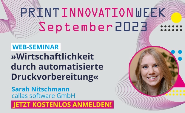 Wie man „Mehr Wirtschaftlichkeit durch automatisierte Druckvorbereitung“ erreicht, ist das Thema eines Webinars von Sarah Nitschmann von callas software am Mittwoch, den 27. September 2023, von 15:00-15:45 Uhr.