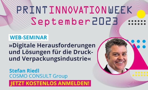 Neue Technologien und Trends erfordern neue Geschäftsmodelle und Prozesse. In dem Webinar „Digitale Herausforderungen und Lösungen für die Druck- und Verpackungsindustrie“ bespricht Stefan Riedl von der COSMO CONSULT Group die wichtigsten digitalen Herausforderungen und Lösungen für die Druck- und Verpackungsindustrie. Der Termin des kostenlosen Webinars ist der Mittwoch, 27. September 2023, von 10:00-10:45 Uhr.