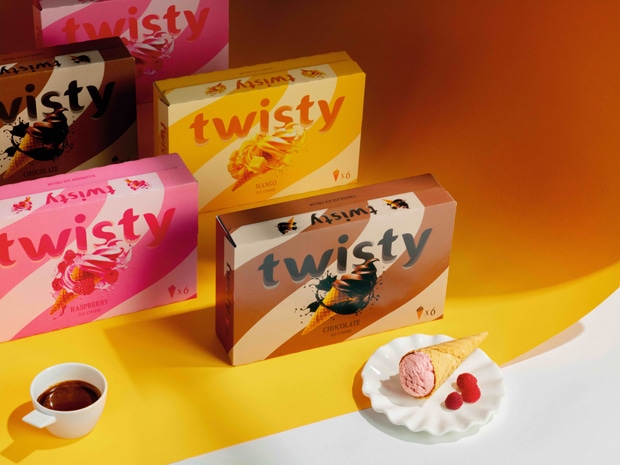 Bei der neuen Eistüten-Verpackung auf dem Kraftliner von Metsä Board kommt eine hochauflösende Rasterweite mit 74 Linien pro Zentimeter (L/cm) zum Einsatz.(Bild: Metsä Board / Jussi Hellsten)