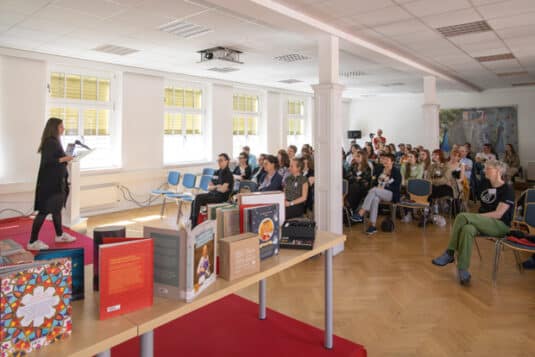 Sechs Referentinnen und ein Referent sprachen über Schaffensprozesse und Inspirationsquellen und zeigten Arbeitsbeispiele. Das war spannend, informativ und vergnüglich. Die folgende Bildergalerie gibt einige Einblicke ….