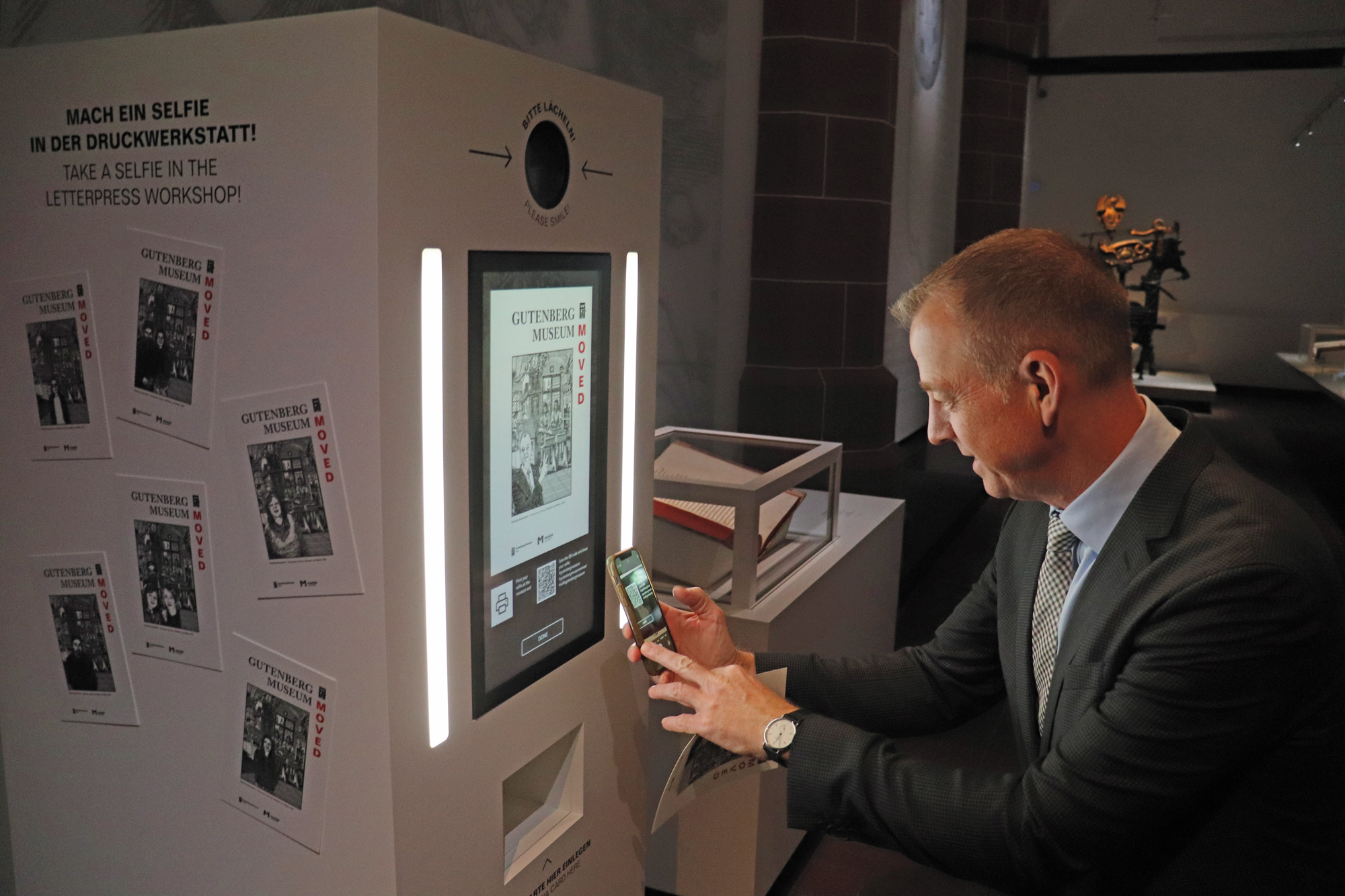 Besucher können in der neuen Ausstellung auch selbst aktiv werden: An verschiedenen Medienstationen haben sie die Möglichkeit anhand einer Medienkarte Hintergrundwissen zu einigen Exponaten einzuholen. Auf dieser Medienkarte werden Bewegtbilder zum jeweiligen Thema aufgespielt. Ein weiterer Mehrwert der Medienkarte besteht darin, das eigene Selfie, welches an der Selfiestation im Ausstellungsraum in der Kulisse einer mittelalterlichen Druckwerkstatt erstellt werden kann, ausgedruckt mit nach Hause zu nehmen.