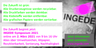Die Corona-Krise hat auch die Papierindustrie getroffen. Doch der Blick geht nach vorn. Das jährliches INGEDE-Symposium, das am 2. März 2021 online über die Bühne gehen wird, befasst sich in mehreren Vorträgen mit dem Thema Umwelt.