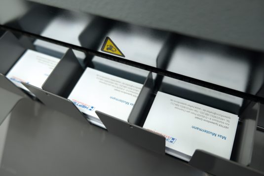 Clever ist aber nicht nur die Bedienung der MORGANA AutoCut Pro, auch die Verarbeitung der Bögen überzeugt durch intelligente Lösungen. So wird jeder Bogen schonend per Saugluftband und aktiver Bogenausrichtung perfekt zugeführt und Druckbildschwankungen werden mittels optischer Marken auf den Bögen automatisch ausgeglichen – Papierstau nein, danke. Ein weiteres Alltags-Problem, von dem sich die Benutzer der Maschine verabschieden können, ist der Mehrfachabzug eines Bogens. Die Doppelblatterkennung setzt hier kontrollierend ein.