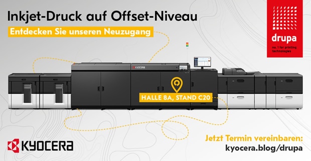 Auf der diesjährigen drupa präsentiert Kyocera Document Solutions sein innovatives Portfolio an Inkjet-Bogendrucksystemen. Ein besonderes Highlight ist die Europa-Premiere des neuen Kyocera TASKalfa Pro 55000c, das eine mit dem Offset-Druck vergleichbare Druckqualität erreicht und damit eine interessante neue Option für die grafische Industrie darstellt.