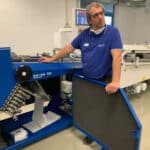 Der Schweizer Postpress-Alliance-Partner Bograma stellte neben der bewährten rotativen Stanzmaschine BSR 550 Servo die damit kombinierte, neu entwickelte Stapelauslage STA 550 BK vor. So entstanden, im Mehrfachnutzen ausgestanzt, inline gestapelt und ausgelegt, originelle runde Untersetzer. Die Maschinenkonfiguration fand unter den Besuchern großen Anklang, unter anderem auch weil die neue Stapelauslage das abgezählte Stapeln von kleinformatigen Etiketten, Visitenkarten und Karten aller Art (egal, ob rechteckig, quadratisch, rund oder konturgestanzt) perfekt bewerkstelligen kann. Mit bis zu neun Nutzen, als Einzelprodukte oder im Schuppenstrom, einem Formatbereich von 50 x 60 bis 230 x 230 mm und einer maximalen Stapelhöhe von 150 mm eröffnet sich hier ein breites Spektrum an Möglichkeiten. Zudem bewerteten die Besucher auch die anpassbare Ausschiebehöhe des Stapeltischs an die Stapelhöhe sowie den vereinfachten Jobwechsel durch Austausch des Blocks mit den Stapelschächten als vorteilhafte Entwicklung zugunsten von Weg- und Zeiteinsparung. Auch wenn an den Alliance Days 2022 nicht explizit demonstriert, so erläuterte das Vertriebsteam von Bograma doch auch, dass die STA 550 BK selbstverständlich über eine Schnittstelle für den Anschluss an eine Banderolier- oder Verpackungsmaschine verfügt. Eine Roboterlösung ist ebenso möglich wie die einfache Entnahme von Hand.