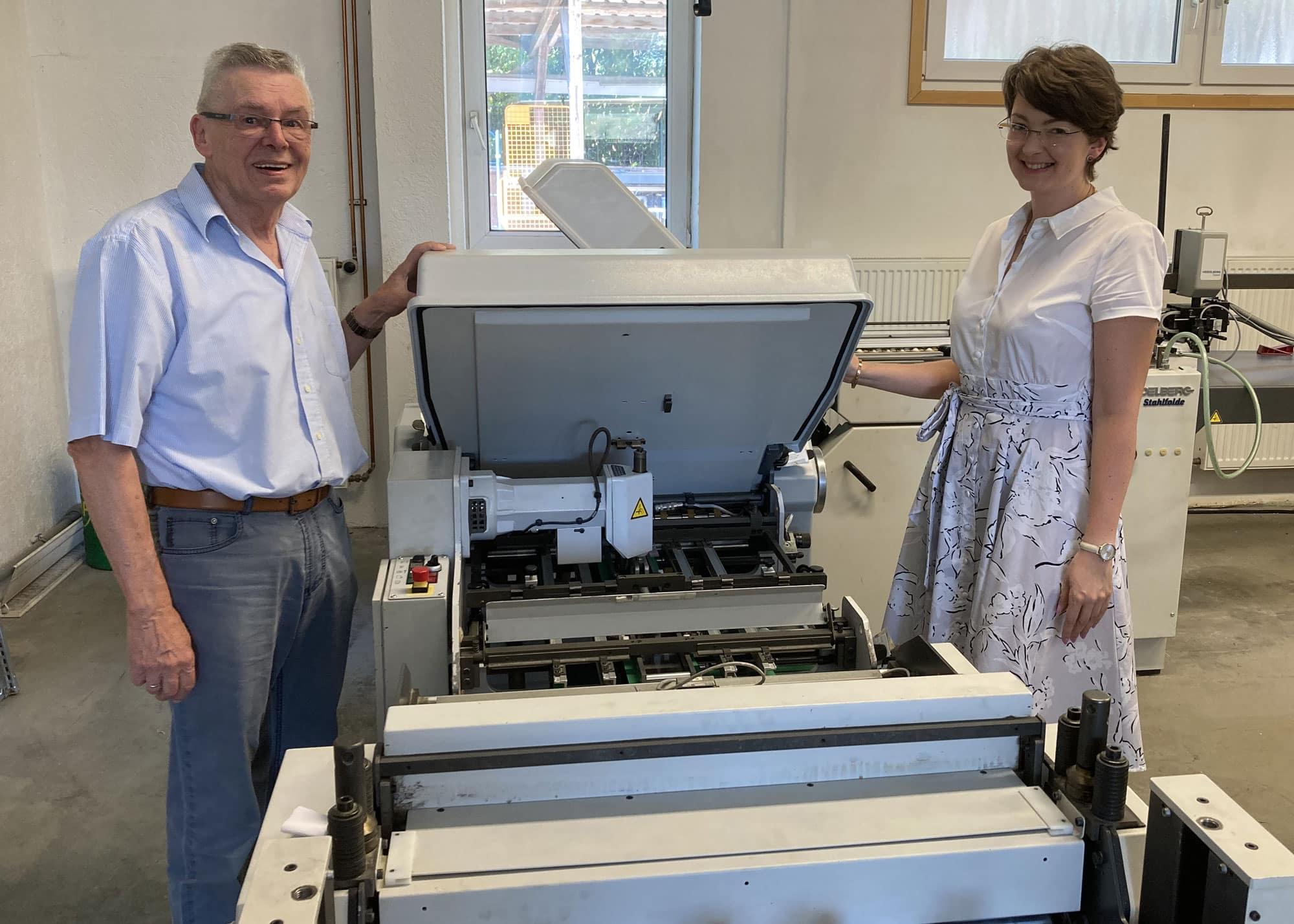 In dem reichhaltigen Maschinenpark bei Böhmer Druck Service kommt auch eine Falzmaschine Marke Heidelberg Stahlfolder Ti 52 zum Einsatz. Geliefert wurde diese vom Gebrauchtmaschinenhändler Altmann Graphische Maschinen GmbH (Weil der Stadt). Geschäftsführer des in der Nähe von Stuttgart ansässigen Unternehmens ist Peter Altmann. Im Fokus des kompetenten und äußerst erfahrenen Altmann-Teams liegt der internationale Handel mit Gebrauchtmaschinen in den Bereichen Druck und Weiterverarbeitung. Die fachliche Bewertung von Produktionssystemen sowie das Reinigen und Überholen von Maschinen mit Originalteilen gehören ebenso zur Kernkompetenz des Unternehmens wie der Installations- und Inbetriebnahme-Service.