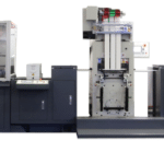 Finishing-Anlage Link DigiPro 350 mit semirotativem Heißfolienprägewerk, semirotativem Offsetdruckwerk, Siebdruckwerk, Heißfolienprägewerk flach, semirotativem Flexodruckwerk, semirotativem Stanzwerk.