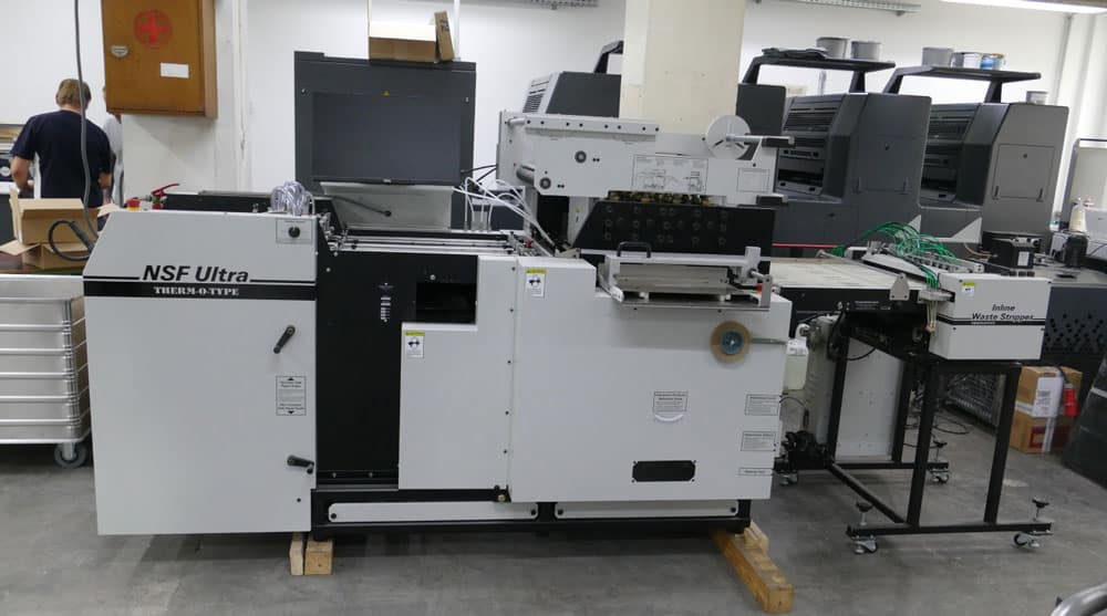 Bei Maiß im Einsatz: Der von binderhaus eingebrachte „Digitaldruck-Tiegel“ NSF Ultra von Thermotype. Er kann Mappen stanzen und große Digitaldruckformate verarbeiten sowie Veredelungen mit bis zu 5.000 Bogen pro Stunde ausführen.