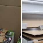 Das Collect-to-Box-System (CTB) beim Einsetzen von banderolierten Broschürenstapeln in einen Versandkarton (links im Bild) und beim Einlegen eines Zwischenkartons (rechts im Bild).