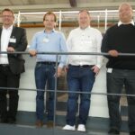 V.l.: Markus Tschepke, Geschäftsführer von manroland sheetfed Deutschland, die Götz-Geschäftsführer Florian und Sebastian Götz sowie der regionale Serviceleiter Sinisa Paradi standen den Besuchern beim Praxis Dialog Rede und Antwort.