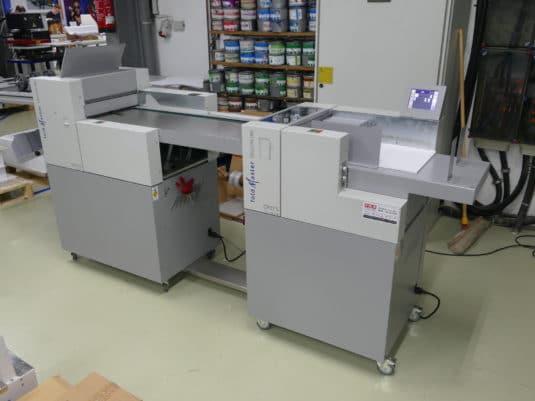 Das FKS/Multigraf-Modell Touchline TCF 375 an der Touchline CP 375 Duo rillt, perforiert und falzt in einem Arbeitsgang. Seit November 2020 kann Walter Perspektiven die vielfältigsten Einsatzmöglichkeiten hierzu nutzen.