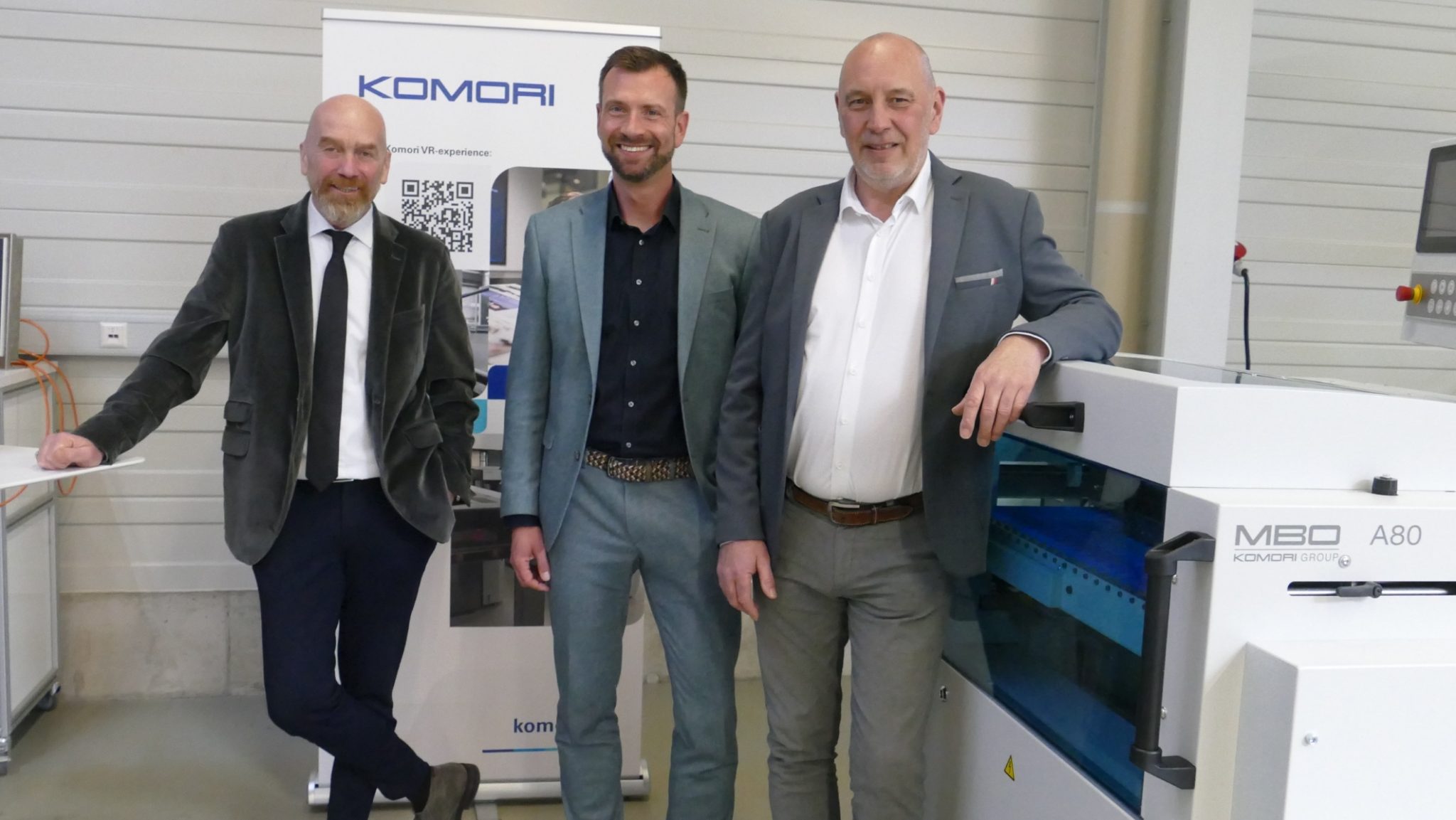 Andreas Söldner (Account Manager Österreich/Bayern), Benjamin Bösch (Managing Director) und Jürgen Woiczyk (Account Manager West) repräsentieren die Druck- und Weiterverarbeitungskompetenzen für MBO, H+H und Komori für die Komori Germany GmbH.