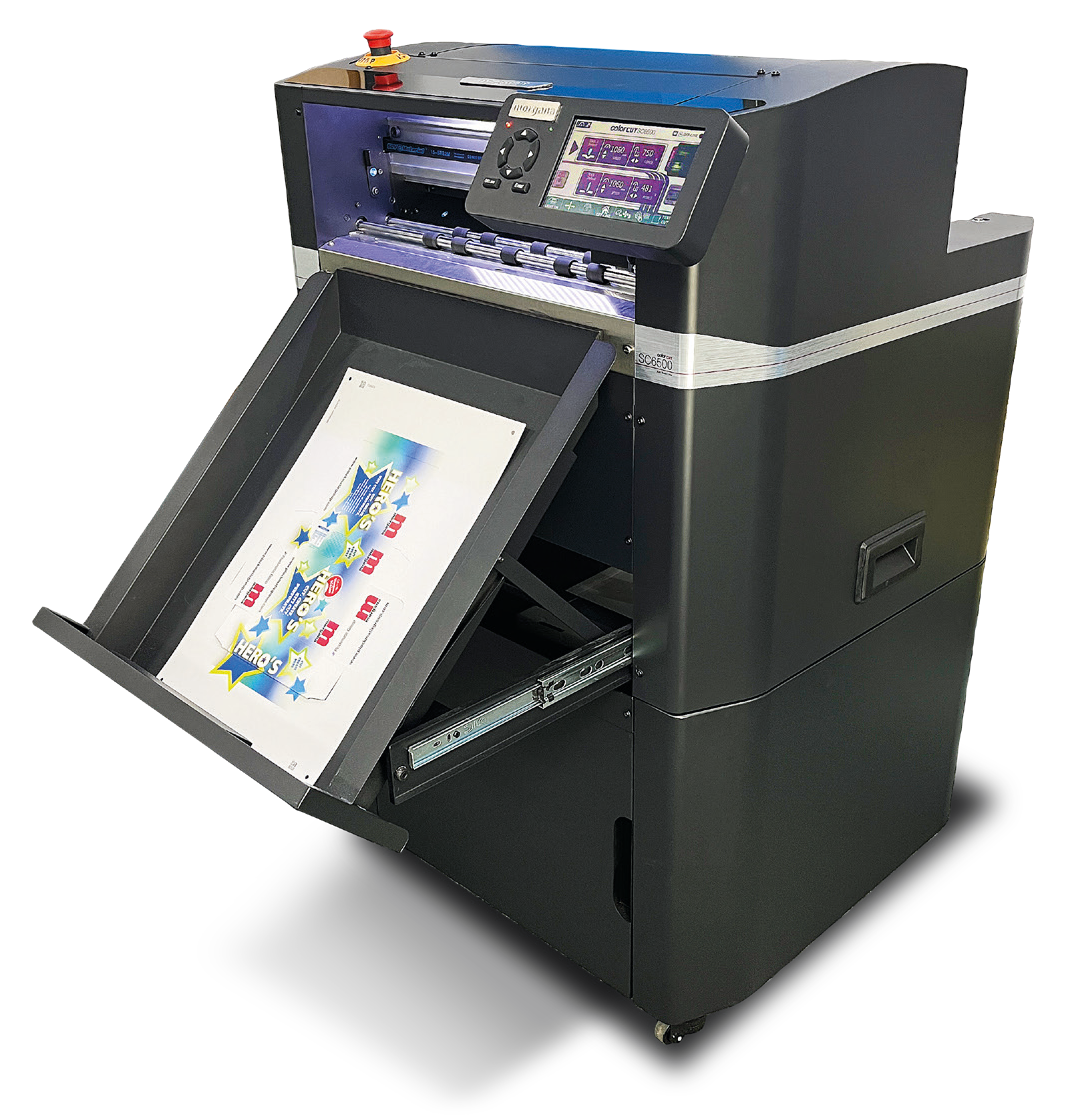 Der Morgana SC6500 ColorCut eignet sich zum Schneiden, Rillen und Perforieren von Druckprodukten/Verpackungen oder Werbeträgern am POS sowie zum (An)schlitzen von Etiketten oder Aufklebern (Kiss-Cut). Mit dem leistungsfähigen Saugluft-Bogenanleger (Füllhöhe: 10,5 cm) lassen sich selbst Karten, Vinyletiketten oder laminierte Bögen problemlos vollautomatisch zuführen. Volumenabhängig lassen sich Kartonagen bis 400 g/m² schneiden und gleichzeitig rillen, bei einem Bogenmaß von maximal 340 x 710 mm. Die Leistung des Systems liegt bei 1.060 mm/sec., wobei dies natürlich stark abhängig ist vom Produkt selbst und der Filigranität und Aufwendigkeit des Beschnitts. Bögen können von vorne oder von hinten bearbeitet werden, was die Auswahl an zu schneidenden Medien deutlich erweitert.