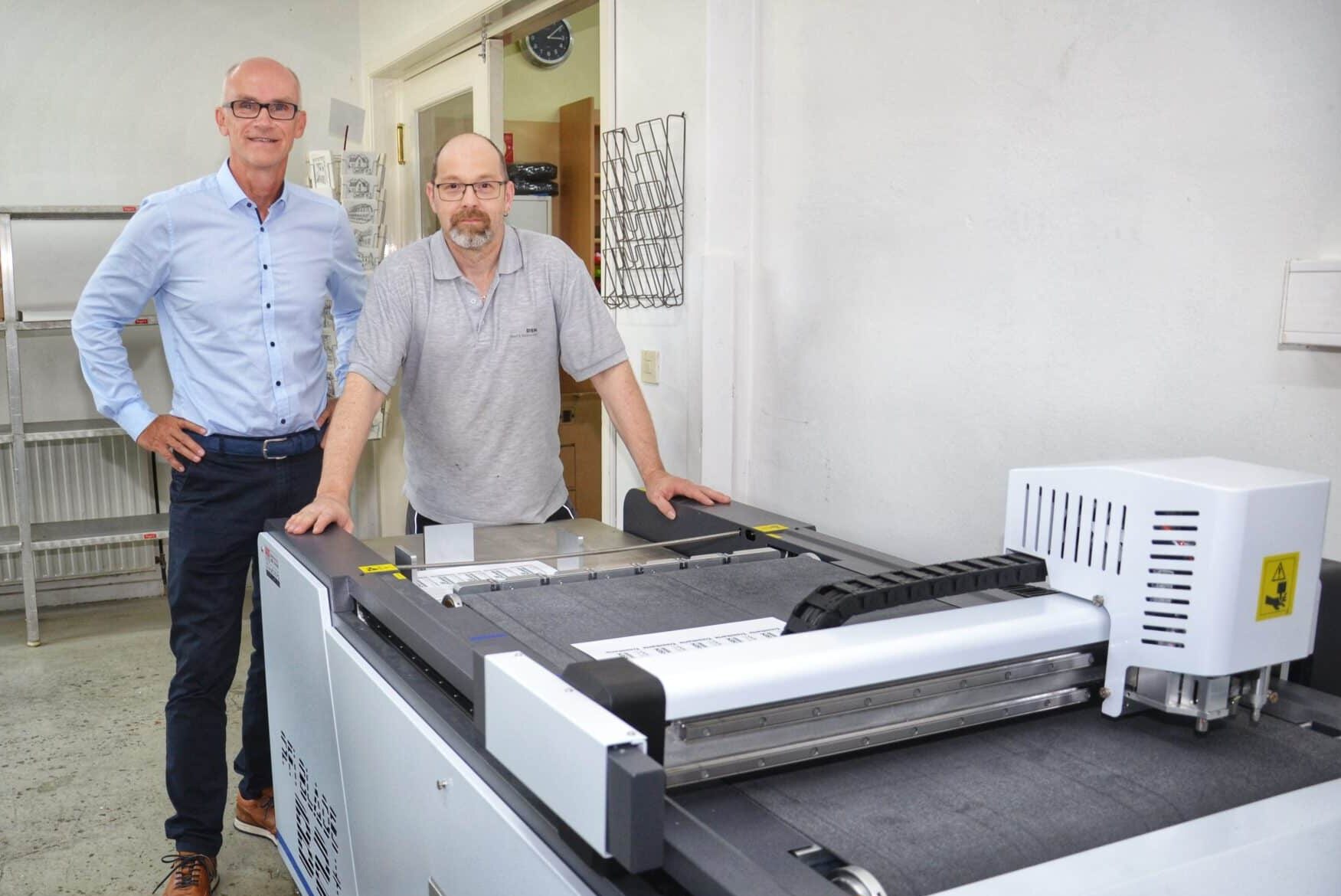 FKS-Gebietsverkaufsleiter Heiko Wolter (l.) und DSN-Inhaber Christian Schmidt – hier zusammen am FKS/PFi Blade B2+-Schneidetisch – haben schnell zusammengefunden.(Bild: Christian Lukas)