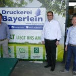 V.l.: Christian Bayerlein, Geschäftsführer der Druckerei Bayerlein, Markus Tschepke, Geschäftsführer der manroland sheetfed Deutschland, und Matthias Siegel von der Grafischen Palette am Bayerlein-Statement für die Umwelt.