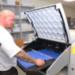 Die Einbringung wird jedoch einige Herausforderungen an die Druckerei stellen – die LV muss durch eine Dachluke angeliefert werden. Die aktuelle Maschine ist in einem sehr guten Zustand, doch die neue LV bietet einfach eine noch bessere Basis, wenn man seinen Kunden ein Rund-um-Paket von der Gestaltung bis zum fertigen Produkt aus einer Hand anbieten möchte. Und natürlich begrüßt man in der Druckerei Becker die Möglichkeit, Broschüren, Grußkarten oder Werbematerialien durch metallisch wirkende Farbakzente zu veredeln.