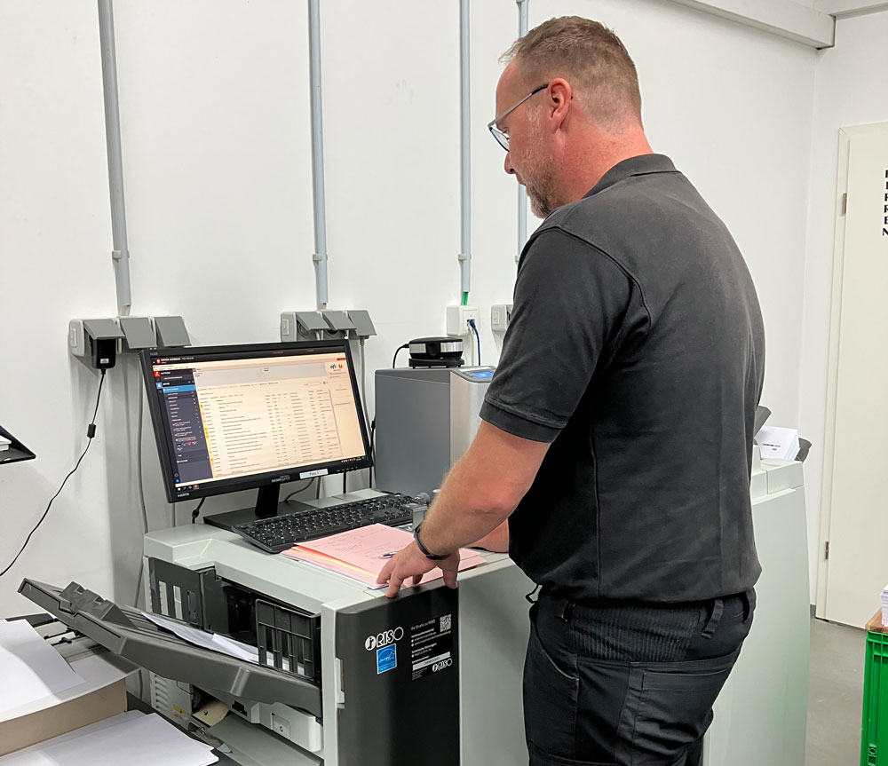 Ein Besuch im Riso-Showroom in Frankfurt bestätigte diesen Eindruck: Die ComColor GD7330 bot genau das, was gesucht wurde – eine leistungsstarke InkJet-Lösung mit niedrigen Betriebskosten und hoher Zuverlässigkeit. Ergänzt um den High Capacity Feeder konnte die Maschine auch bei größeren Volumina überzeugen. Die Entscheidung fiel schnell zugunsten von Riso.