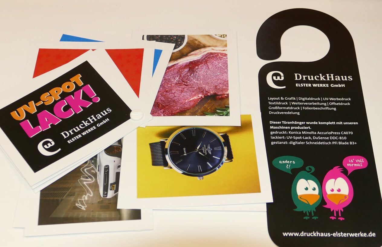 Verschiedene Veredelungen mit Lack und eine Formstanzung zeigen, welche gestalterischen Möglichkeiten das DruckHaus Elster Werke seit April 2021 durch zwei neue Maschinen von FKS besitzt. Das Kunden-Feedback ist groß.