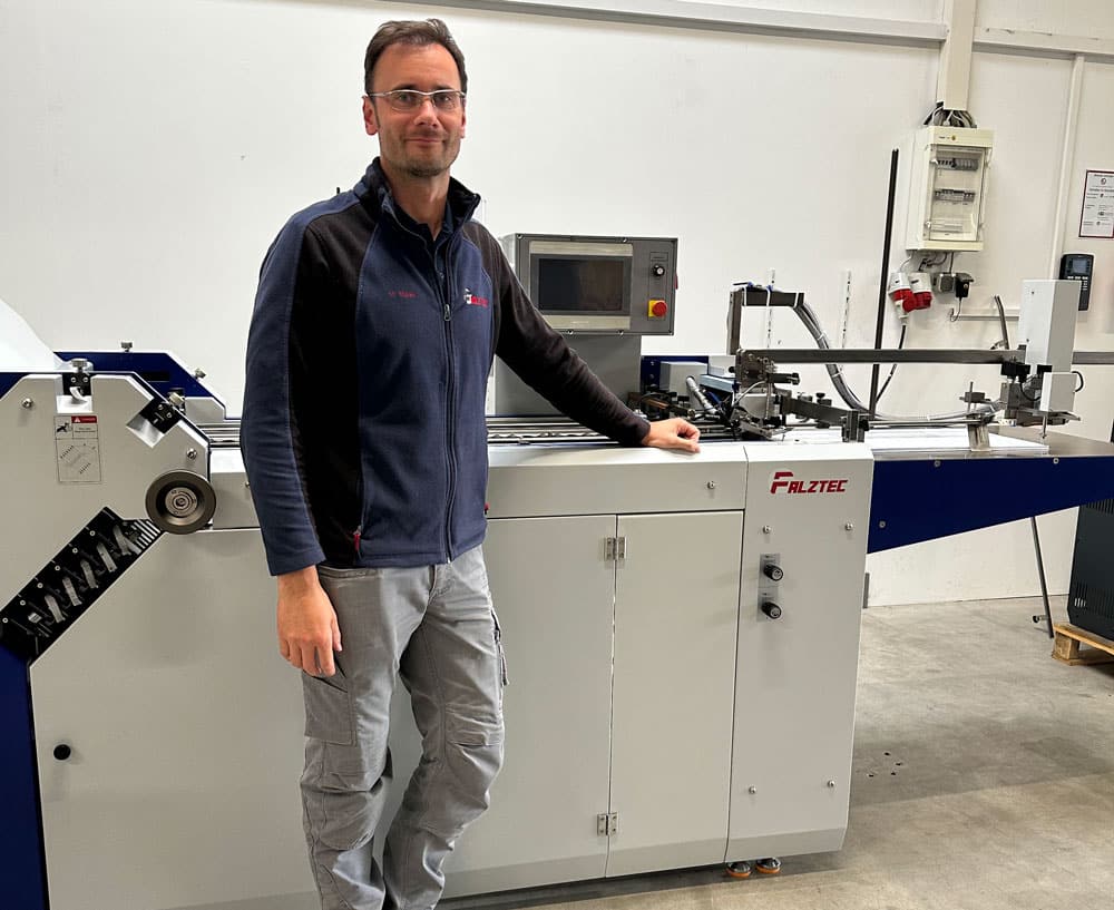 Martin Malek, Geschäftsführer der Falztec GmbH, präsentiert