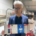 Selbst komplexe Arbeitsschritte erledigt der FK 3500 automatisch.Peter Grammer zeigt eine mit dem FK 3500 produzierte, geöste Spezialparkscheibe.