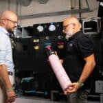 Kreative Lösungen durch einfachen Toner-Wechsel sind an der Fujifilm Revoria PC 1120 schnell möglich. Personalleiter Christiano Menconi (r.) zeigt, wie es funktioniert.