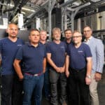 Bernd Wein (r.) mit Paragon-Mitarbeitern, die an der Eindrucklösung geschult wurden und daran arbeiten.