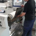 Auch der Wechsel der Klebstoff-Klischees ist dank der seitlich ausfahrbaren Leimwalze eine Sache von Sekunden.