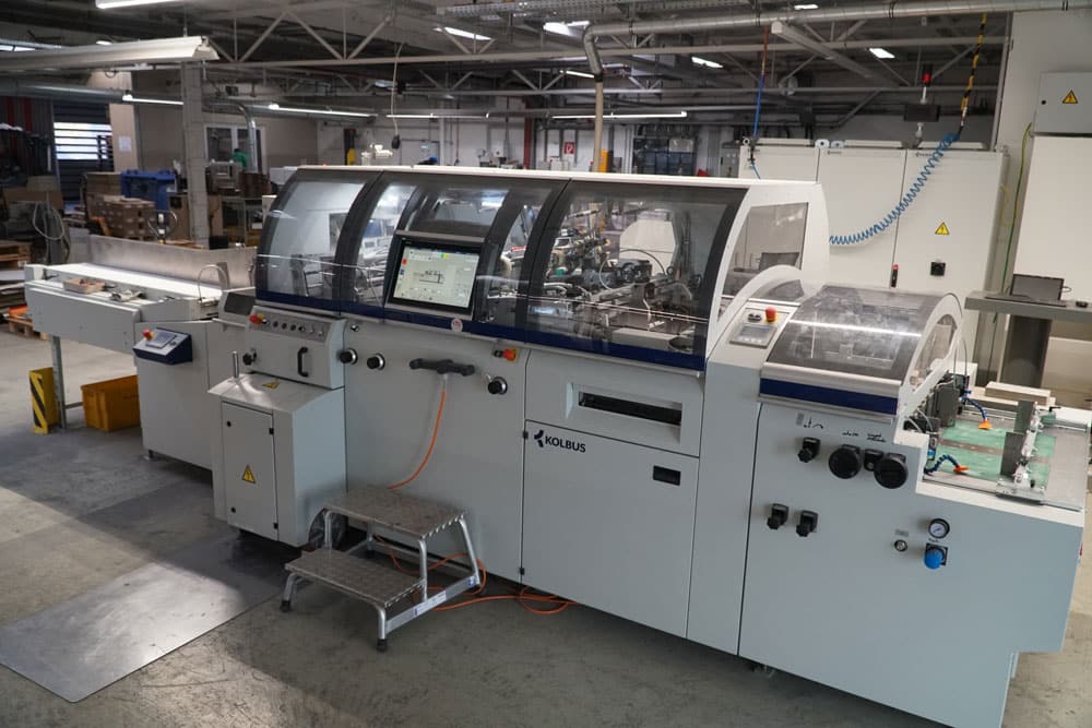 Gutenberg Beuys Feindruckerei investiert in Buchdeckenmaschine von Kolbus