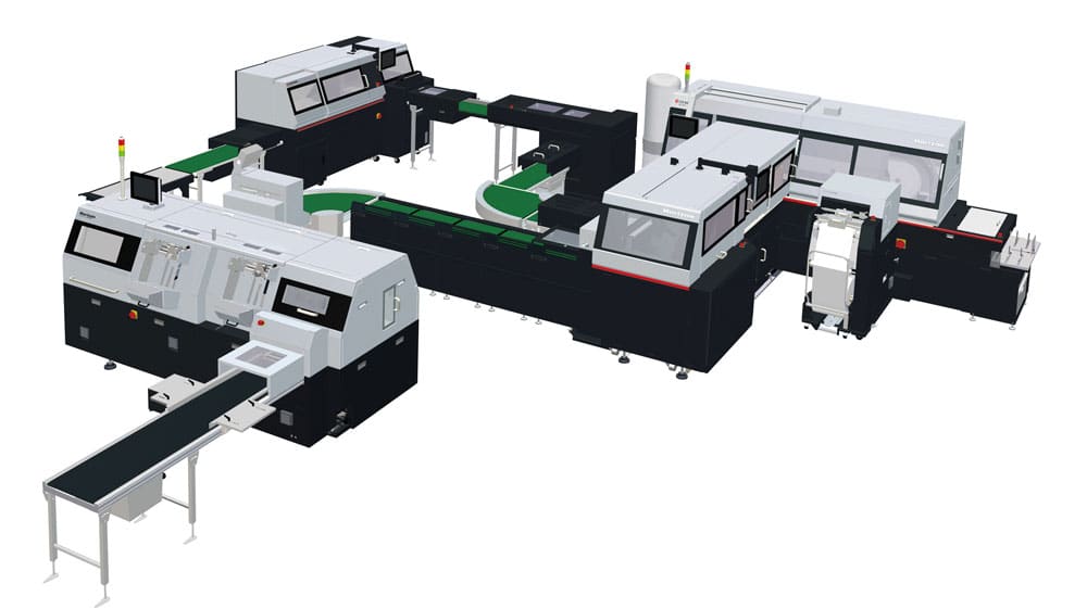 Im Bereich Klebebinden präsentiert Horizon verschiedene Systeme für die Inline-Buchproduktion von kleinen bis mittleren Auflagen. Gezeigt werden sowohl die Verarbeitung von der Rolle als auch Cut-Sheet-Anwendungen, teilweise mit Direktanbindung an Digitaldrucksysteme. Darüber hinaus kommt auch die Weiterverarbeitung konventioneller Signaturen zum Einsatz – sowohl zur Herstellung von Softcoverbüchern als auch von Buchblöcken für die Hardcover-Produktion. Um automatisierte Abläufe wie in einer Smart Factory zu demonstrieren, werden zuvor gefalzte Signaturen von einem Palettierroboter abgestapelt und von einem AGV zur Weiterverarbeitung transportiert – ohne manuelle Eingriffe.