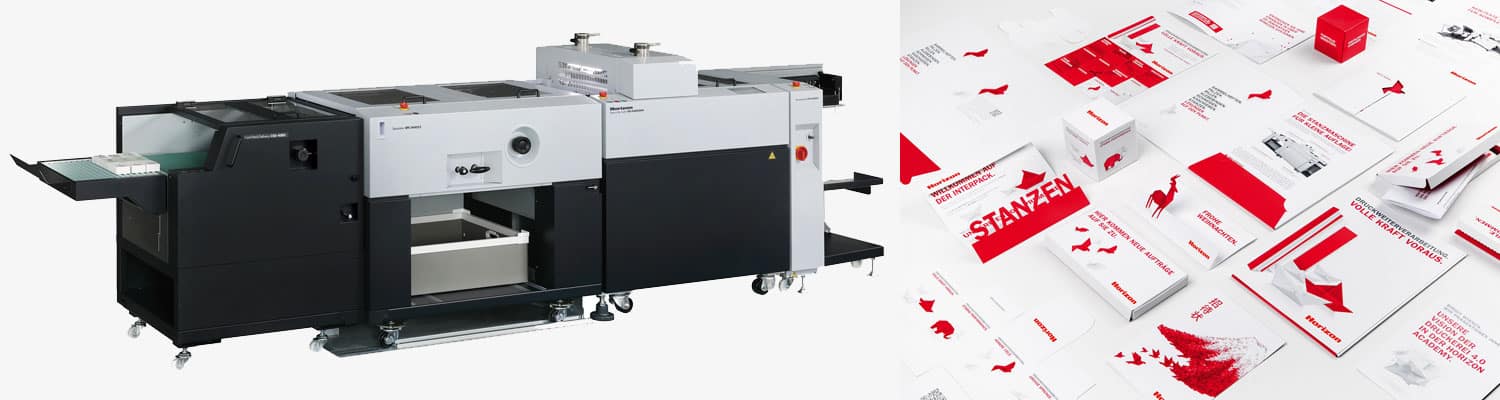 Die Horizon RD-N4055DM arbeitet nach einem flexiblen und intelligent gesteuerten rotativen Stanzprinzip, bei dem das zu stanzende Material in der Maschine vorwärts und rückwärts transportiert werden kann. Dadurch lässt sich die Stanzform im Mehrfachnutzen verwenden. Das Ergebnis: deutliche Kostenreduktion der Stanzformen – gerade bei kleineren Auflagen ein entscheidender Wettbewerbsvorteil. Dank optionaler Separiereinheit entfällt außerdem das manuelle Heraustrennen der Produkte vom Bogen. Als Lösung für Stanzen, Anstanzen, Rillen, Perforieren und Prägen öffnet die RD-N4055DM eine ganze Reihe von Anwendungsmöglichkeiten, darunter zum Beispiel personalisierte Verpackungen, Präsentationsmappen, Spielkarten, Visitenkarten, Aufkleber, Etiketten, Mailings, Flyer in ausgefallenen Formen und vieles mehr.