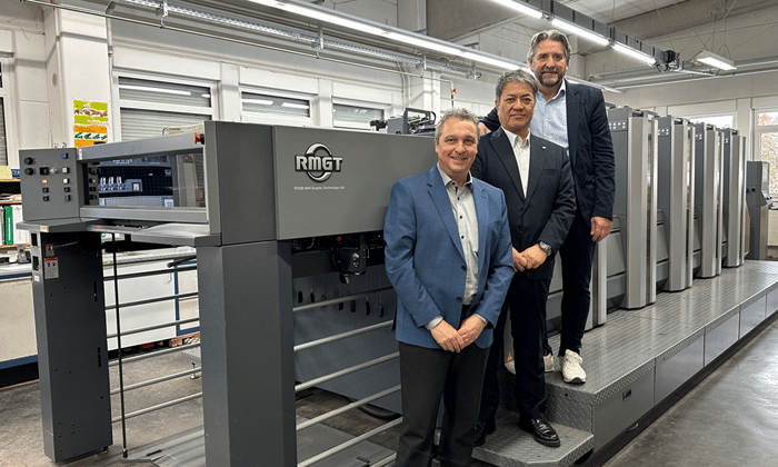 Zusammengebracht hat RMGT und Wesseler schließlich Heinrich Maag, Verkaufsleiter D/A/CH für RMGT-Offsetanlagen bei Chromos. Er kannte die Wünsche beider Unternehmen und schlug die Hubertus Wesseler GmbH als neuen Generalvertrieb für RMGT in Deutschland vor. Eine glückliche Fügung, wie Kohei Yatsumoto sagt: „Vor der anstehenden drupa 2024 wollten wir einen starken Partner in Deutschland haben, und das haben wir jetzt geschafft.“ Man habe großes Vertrauen in Wesseler. „Das hilft uns, wieder sichtbarer zu werden.“