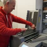 Mit wenigen Handgriffen rüstet Ulrich Vitzethum die Morgana Digifold Pro XL mit dem optionalen Kit zum Längs- und Quer-Perforieren aus.Einfacher geht es kaum: Über den Touchscreen lassen sich die verschiedenen Falzarten und Formate anwählen. Die Einrichtezeit reduziert sich auf ein Minimum.