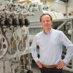 Markus Dammann, Kolbus-Vertriebsmitarbeiter für Nordamerika, freut sich über den ersten deutschen Kunden für die RD 115G. Die Maschine vereint ein innovatives Antriebskonzept mit zahlreichen Funktionen.
