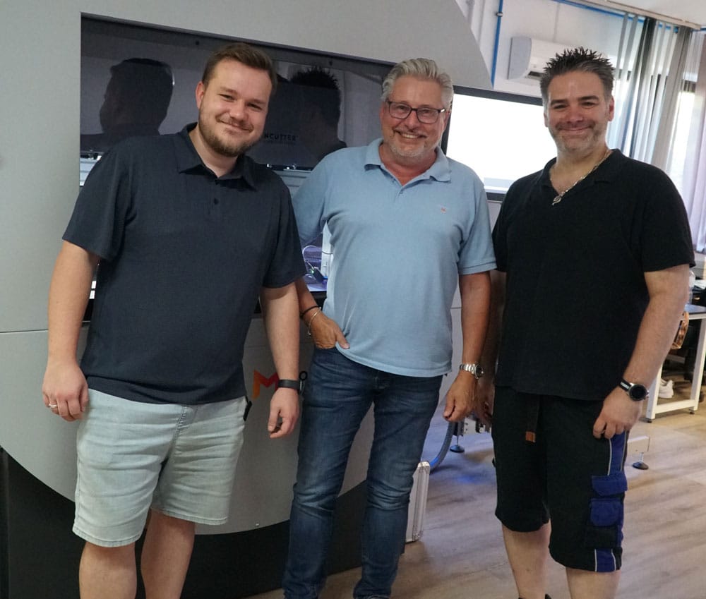 „Das kann man auch anders machen“, dachte man sich bei Küpper Druck und tauschte analoge gegen digitale Technik aus (von links): Betriebsleiter Eric Sommer, Geschäftsführer Dirk Küpper und Produktionsleiter Christian Czerwonsky.