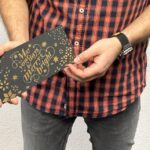 „Unsere Kunden kommen zum Großteil aus dem klassischen Offsetdruck, und die Druckprodukte sind zum Teil sehr beratungsintensiv“, erklärt Marc Ahrweiler, der sich als Spezialist für hochwertige und ausgefallene Digitaldrucke sieht. Zu den Printprodukten zählen Verpackungen, Flyer, Einladungskarten, Mailings, Visitenkarten und kleinere Broschüren. „Insbesondere für Sonderprojekte wie kleine Auflagen im Bereich Verpackung benötigen die Kunden unser Know-how“, berichtet Marc Ahrweiler und zeigt eine aufwändig produzierte Gin-Verpackung, die partiell mit Gold bedruckt wurde. „Der Gold-Druck kann durchaus mit dem Offsetdruck mithalten“, freut sich der Unternehmer. Sein größter USP ist die gemein-same Entwicklung außergewöhnlicher Produkte für seine Kunden. „Viele kennen heute nur noch 4C-Produkte, die geradeaus gedruckt werden – bei uns ist jedoch auch das Außergewöhnliche Alltag.“