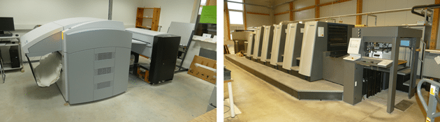 Auch im Offsetbereich hat sich aktuell bei Schmekies etwas getan. Die mit dem Umzug 2014 ins neue Gebäude eingebrachte Heidelberg XL 75-5 + L wird jetzt mit Druckplatten vom nagelneuen Heidelberg Suprasetter A 75 versorgt.