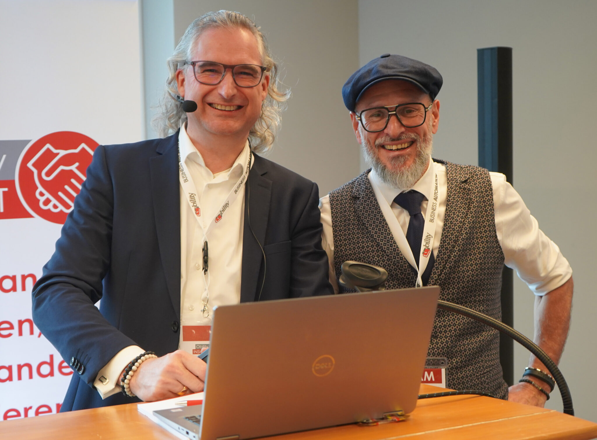 Prof. Dr.-Ing. Michael Dattner (links neben Obility-Geschäftsführer Frank Siegel) wird die Teilnehmerinnen und Teilnehmer von Obility Insight 2025 aktuell über die Bedeutung der Künstlichen Intelligenz für die Druckbranche informieren.