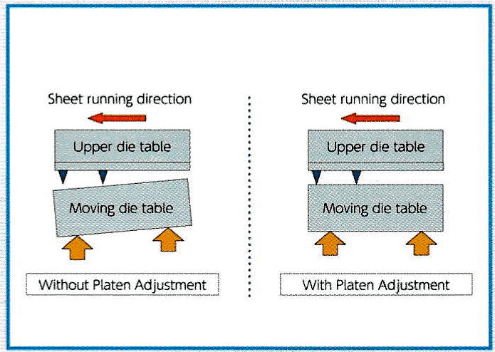 Die Grafik veranschaulicht den Effekt des Stanzdruckausgleichs auf die Tiegelkippung.
