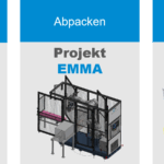 Der zweite Baustein für die vollautomatische Faltschachtel-Linie nennt sich „EMMA“. Dieses ebenfalls roboterbasierte Modul dient zum Abpacken von zuvor aufgerichteten Faltschachtelstapeln in Umkartons. „EMMA“ befindet sich derzeit in der Testphase und soll Mitte 2025 marktreif sein. QTM erhält dafür Unterstützung von höchster Stelle: Im Rahmen des zentralen Investitionsprogramms Mittelstand wird die Entwicklung durch das Bundesministerium für Wirtschaft und Klimaschutz (BMWK, Kennzeichen EP201389) gefördert. „Wir fokussieren uns dabei zunächst auf Längsnaht-Faltschachteln“, erläutert Philipp Quenzel. „Nächstes Ziel ist dann das um 180 Grad verschränkte Abpacken von Schachteln mit Automatikböden.“ Die Anlage funktioniert, wie die komplette Lösung, unabhängig vom Typ der Klebemaschine und ist auf eine Leistung von fünf Picks pro Minute ausgelegt. „Damit ist sie auf jeden Fall nicht das Bottleneck“, betont Quenzel.