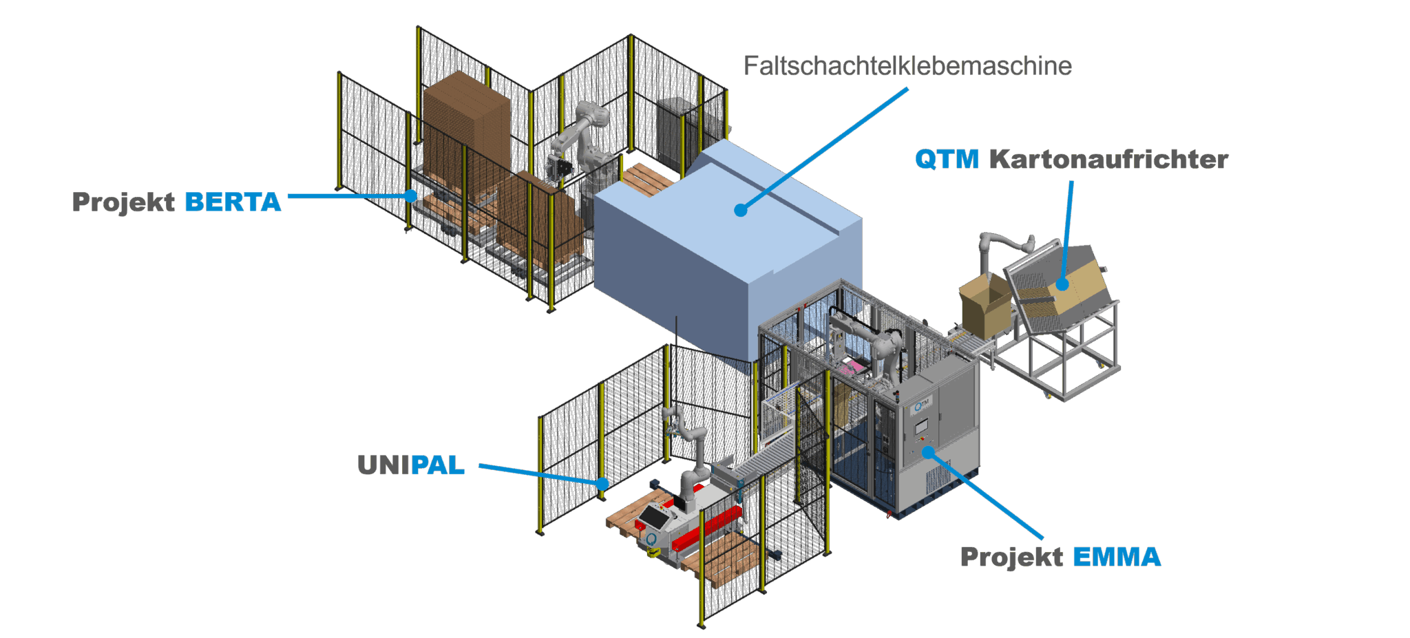 In drei Ausbaustufen will QTM jede Faltschachtelklebemaschine zu einem Vollautomaten machen.