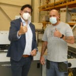 Geschäftsführer Marko Schmitz und Industriebuchbinder Daniel Butterweck sind mit dem von Witt aufgearbeiteten Heidelberg Stahlfolder KH66 hochzufrieden.