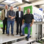 Das gemeinsame Projekt ist fertig. fertig (v.l.): Helmar Schmidt-Vertriebsleiter und Prokurist Jens Liebetreu, Holger Schöneis, Staper Europe-Geschäftsführer Egon Krainz und Jens Schöneis setzen auf die Produktion individueller Verpackungen.